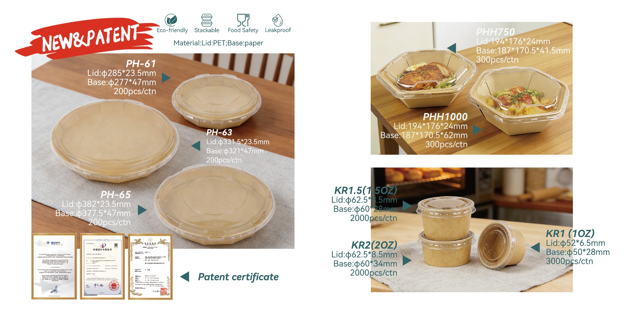 Harvest PH Series Round Kraft Paper Sushi Tray With PET Lid — PH-61, PH-63, PH-65PH series sushi tray are eco- friendly sustainable takeout trays made of food grade kraft paper.